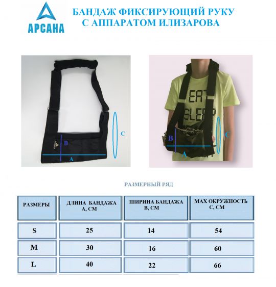Бандаж, фиксирующий руку с аппаратом Илизарова — это надежное средство для фиксации руки. Помогает разгрузить плечевой сустав, принимая на себя вес верхней конечности, упрощает процесс лечения и реабилитации.