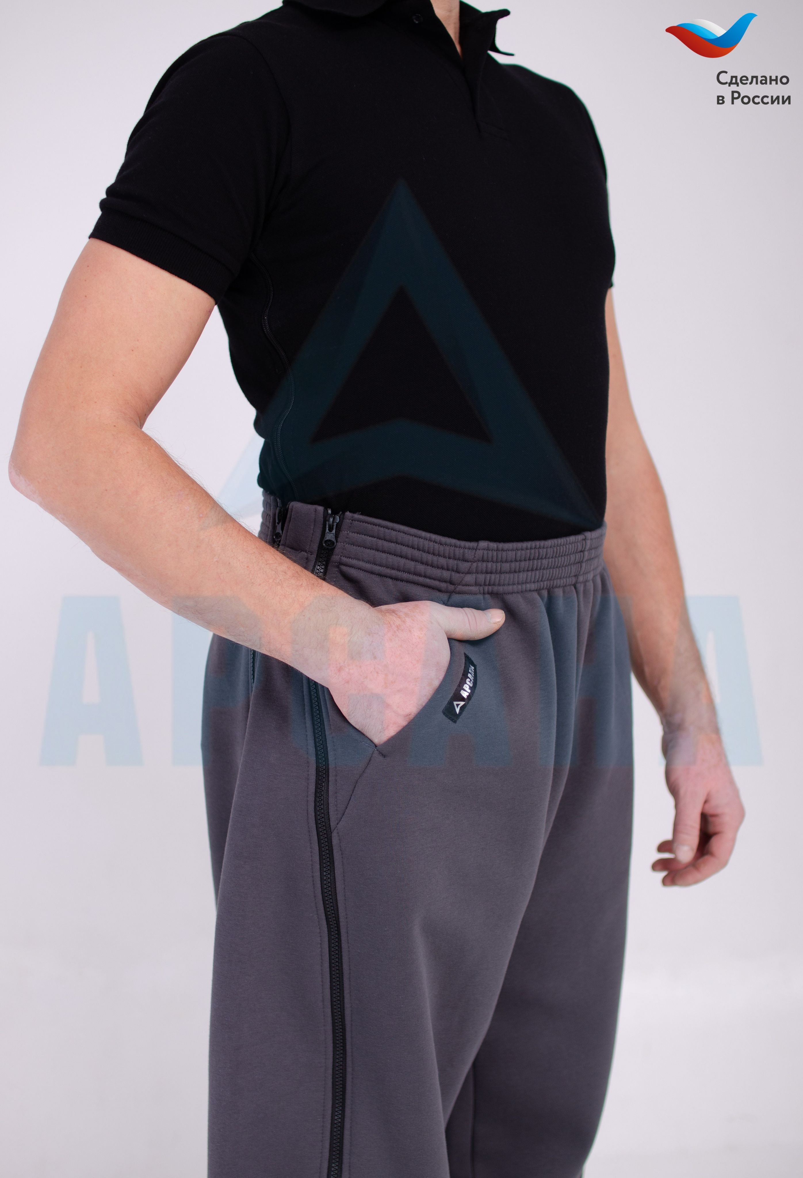 Отличительной особенностью является наличие 2-х молний по бокам по всей длине штанины и съемной вставкой, которую можно использовать как на правой, так и на левой ноге. Расстегиваются снизу вверх. Имеют комфортную посадку, карманы сбоку, пояс на эластичной резинке со шнурком. Благодаря свободному крою не стесняют движений. Идеальны для повседневной носки. После снятия аппарата вставку можно отстегнуть и носить брюки привычного фасона.