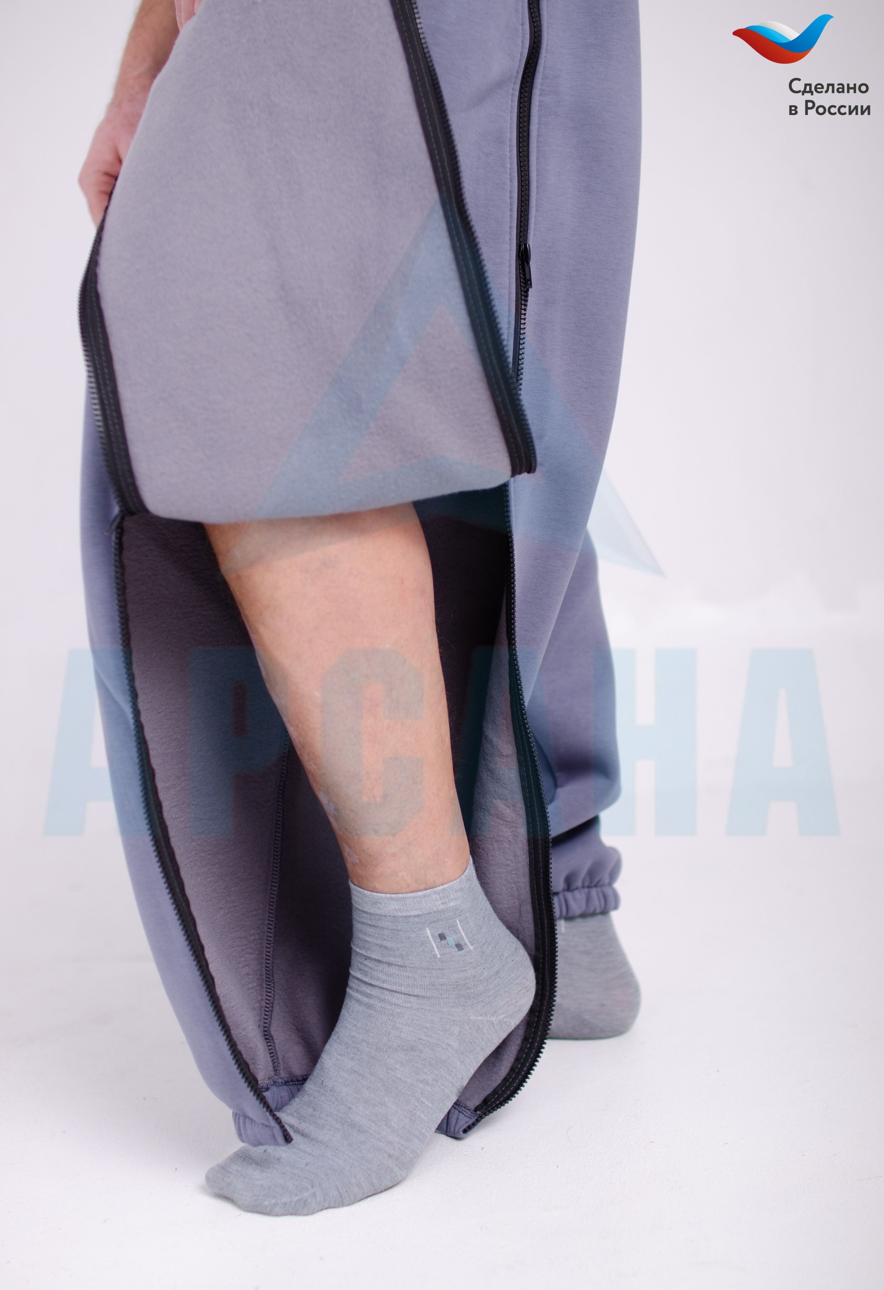 Брюки ортопедические межсезонные (до 0) с расширением штанины под аппарат Илизарова на всю ногу, относятся к категории адаптивной одежды. Съёмная вставка для расширения одежды под аппарат Илизарова может применяться с любой стороны. Используются при установленном аппарате внешней фиксации Илизарова.