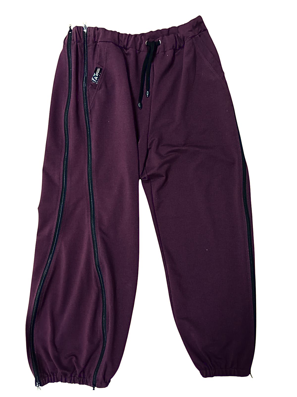 Отличительной особенностью является наличие 2-х молний по бокам по всей длине штанины и съемной вставки, которую можно использовать как на правой, так и на левой ноге. Расстегиваются снизу вверх. Имеют комфортную посадку, карманы по бокам, пояс на эластичной резинке со шнурком. Благодаря свободному крою не стесняют движений. Идеальны для повседневной носки. После снятия аппарата вставку можно отстегнуть и носить брюки привычного фасона.