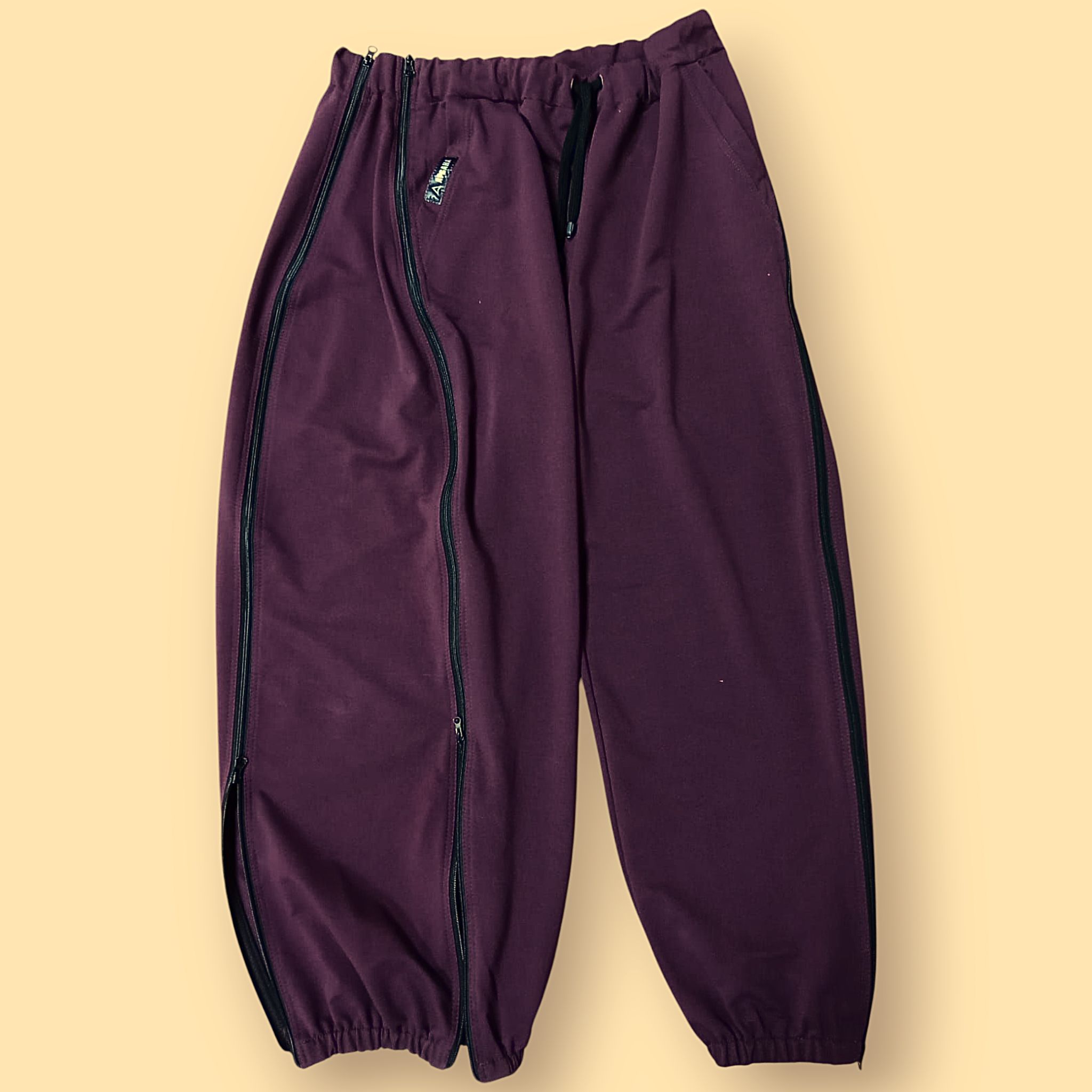 Отличительной особенностью является наличие 2-х молний по бокам по всей длине штанины и съемной вставки, которую можно использовать как на правой, так и на левой ноге. Расстегиваются снизу вверх. Имеют комфортную посадку, карманы по бокам, пояс на эластичной резинке со шнурком. Благодаря свободному крою не стесняют движений. Идеальны для повседневной носки. После снятия аппарата вставку можно отстегнуть и носить брюки привычного фасона.