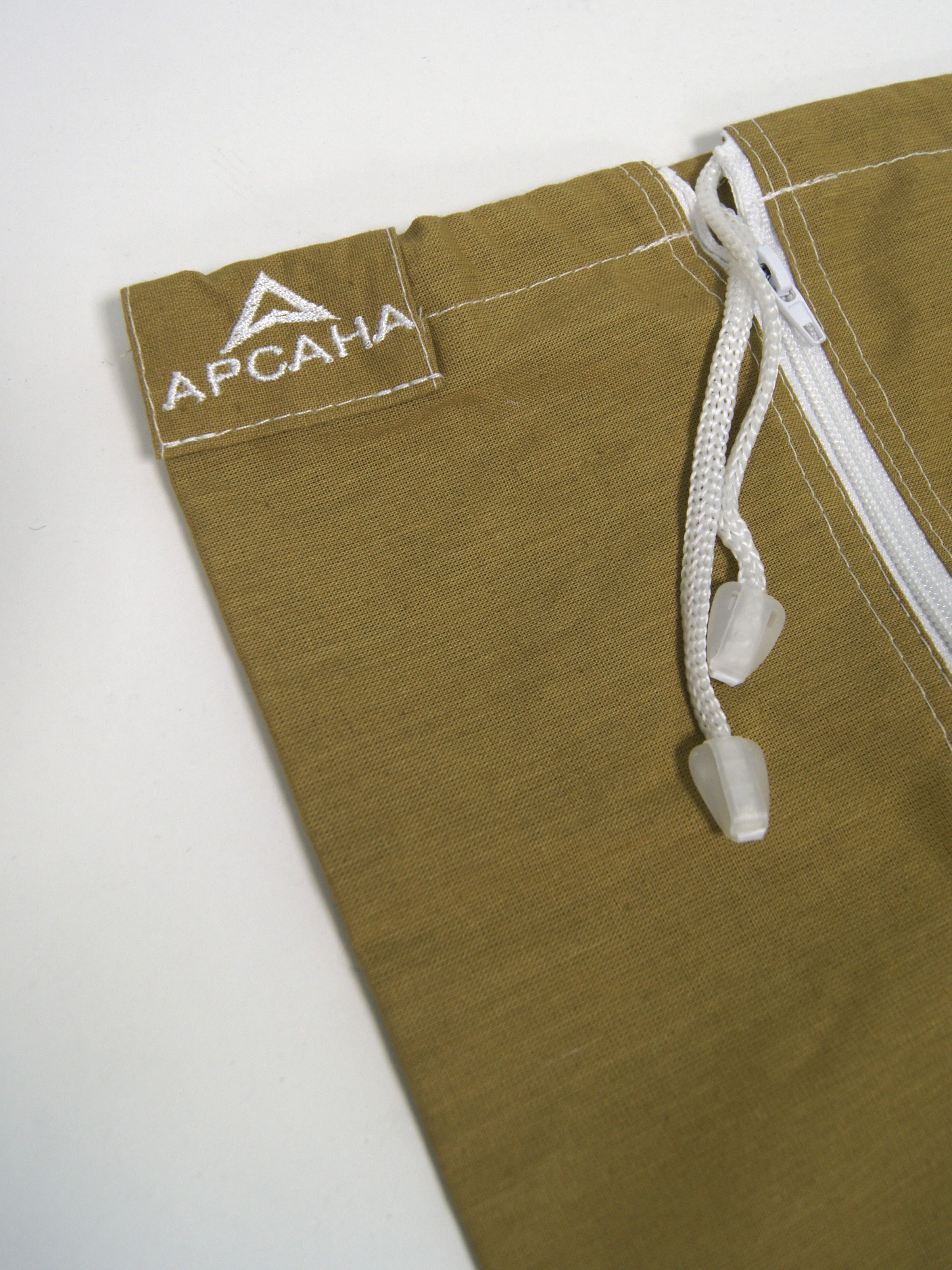 Цвет изделия - песочный, молния и завязки - белые.