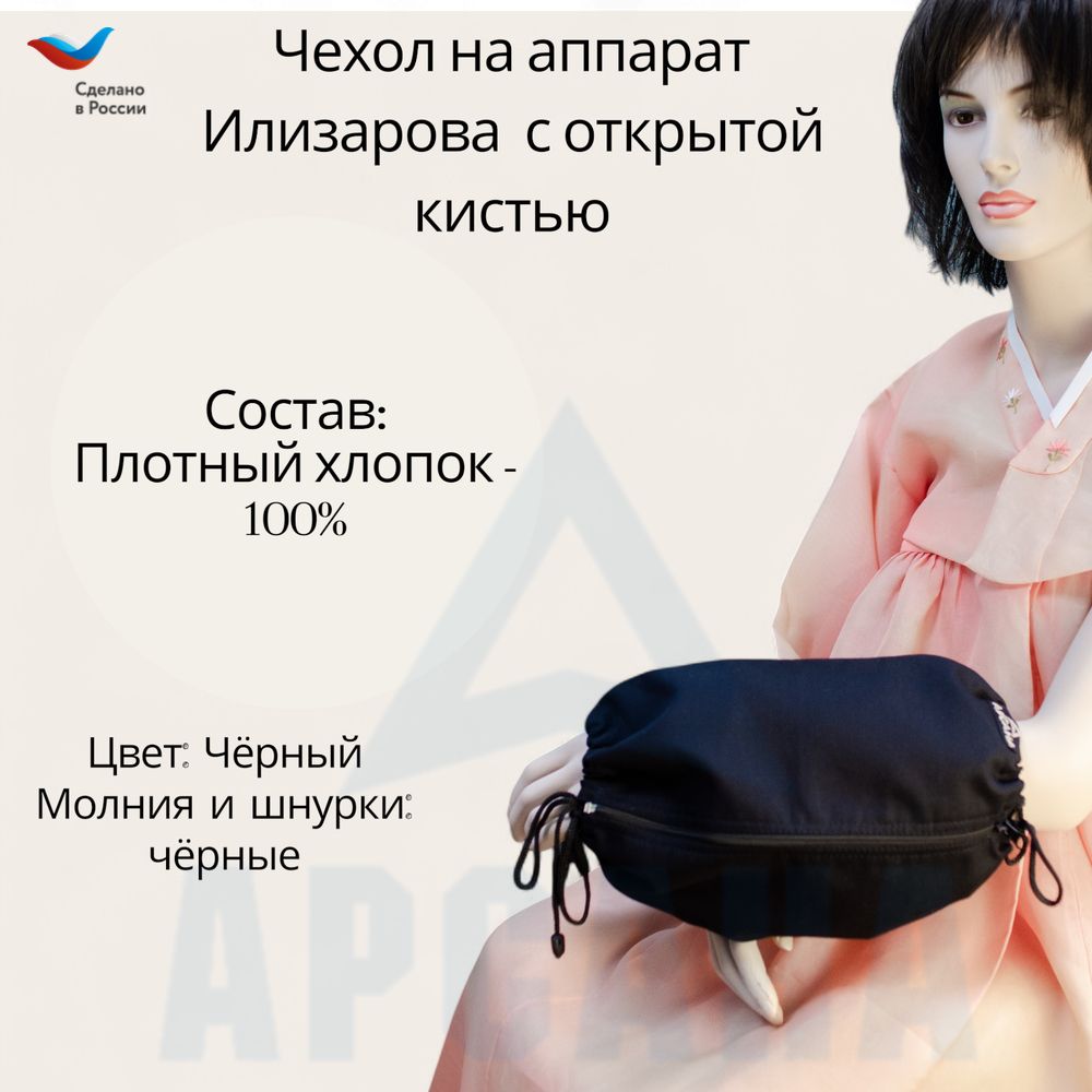 Защитный чехол с открытой кистью на аппарат Илизарова обеспечивающего комфортную фиксацию конечностей без давления. Модель с открытой кистью разработана с пониманием важности подвижности пальцев и соблюдения гигиены. Открытая зона для свободных движений кисти идеально сочетается с лечебными процедурами.