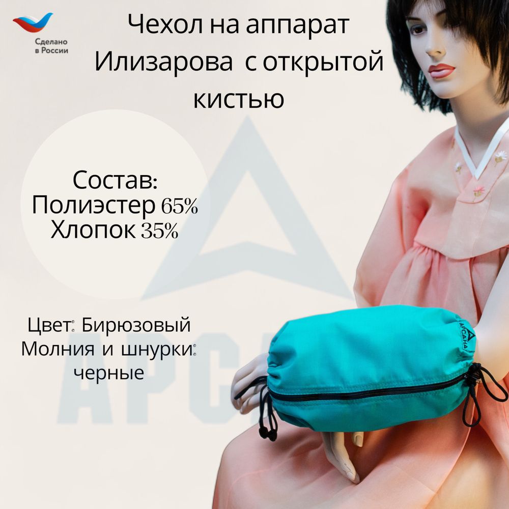 Защитный чехол с открытой кистью на аппарат Илизарова обеспечивающего комфортную фиксацию конечностей без давления. Модель с открытой кистью разработана с пониманием важности подвижности пальцев и соблюдения гигиены. Открытая зона для свободных движений кисти идеально сочетается с лечебными процедурами.
