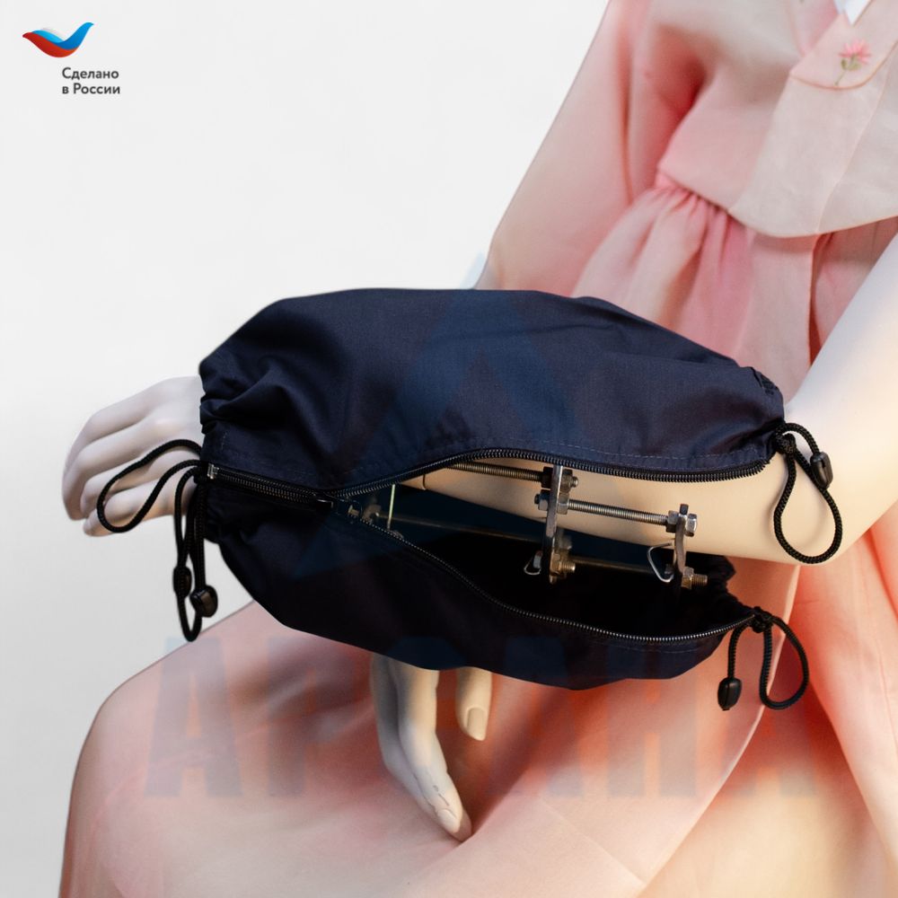 Защитный чехол с открытой кистью на аппарат Илизарова обеспечивающего комфортную фиксацию конечностей без давления. Модель с открытой кистью разработана с пониманием важности подвижности пальцев и соблюдения гигиены. Открытая зона для свободных движений кисти идеально сочетается с лечебными процедурами.