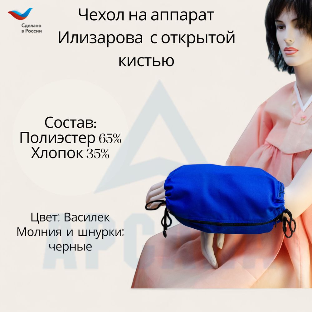 Защитный чехол с открытой кистью на аппарат Илизарова обеспечивающего комфортную фиксацию конечностей без давления. Модель с открытой кистью разработана с пониманием важности подвижности пальцев и соблюдения гигиены. Открытая зона для свободных движений кисти идеально сочетается с лечебными процедурами.