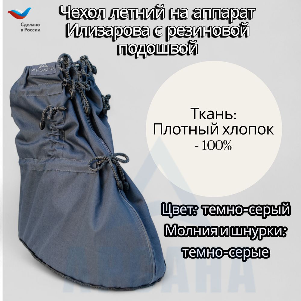 Чехол с регулировкой длины, подошвой из резины на аппарат Илизарова на голени и стопе.