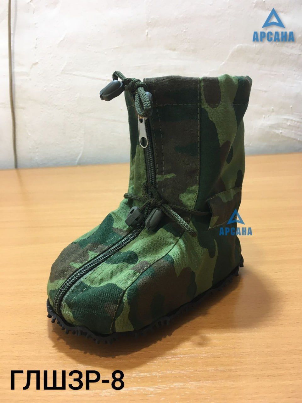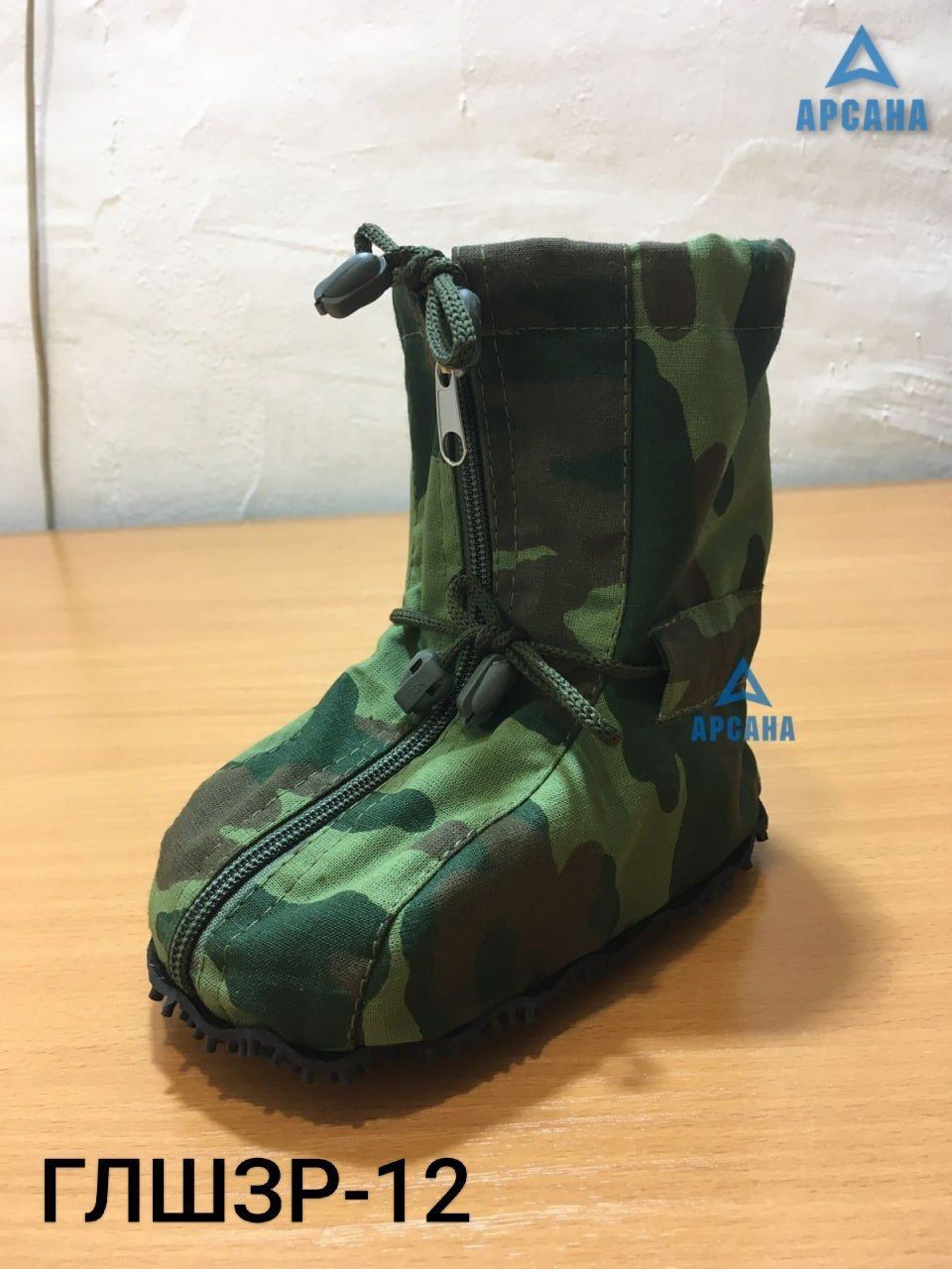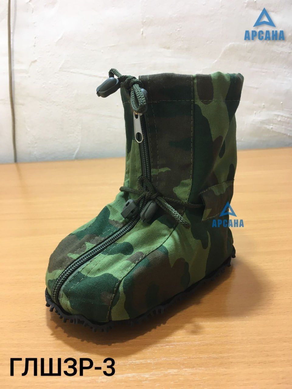Цвет изделия - камуфляж, молния и завязки - черные.