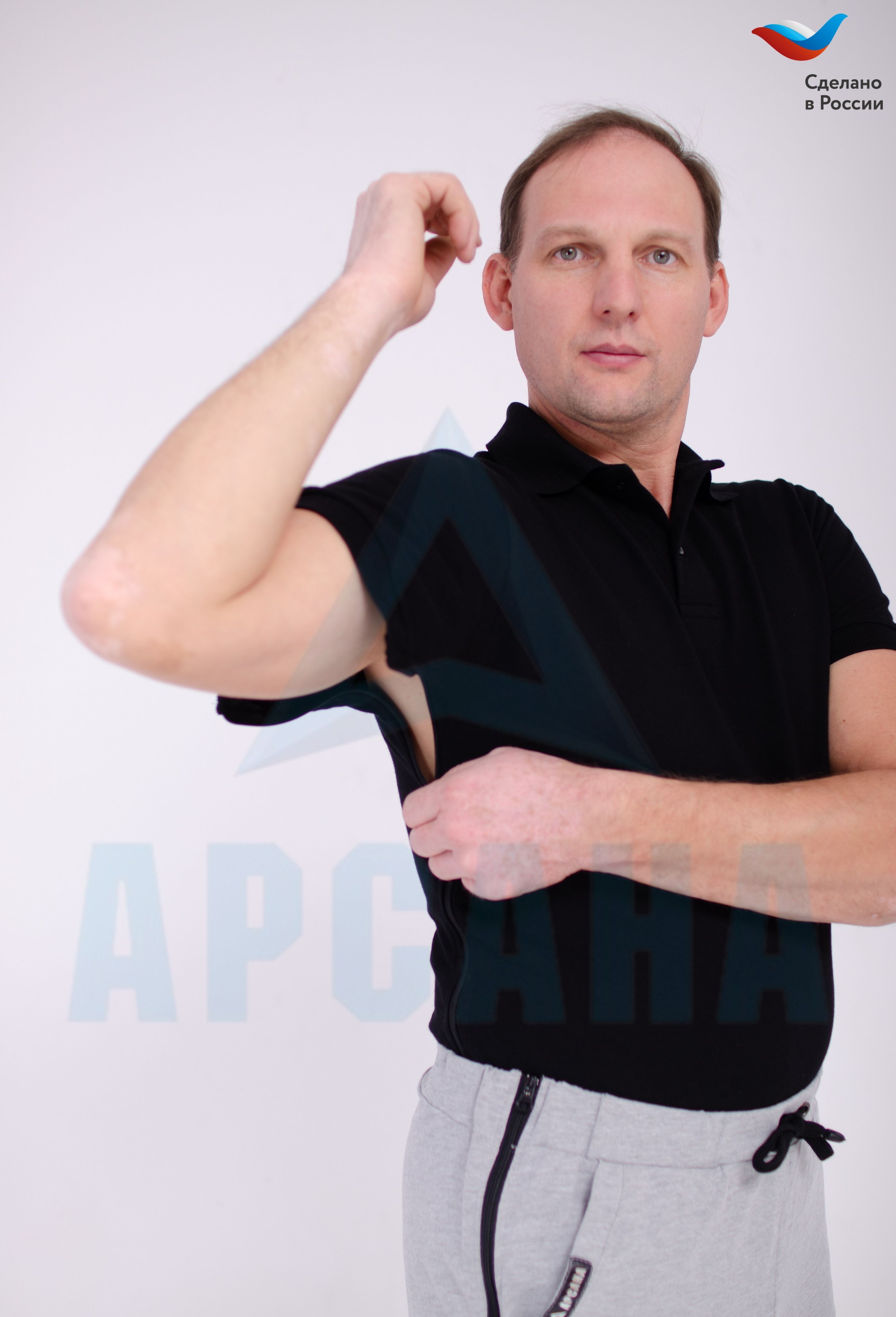 Адаптивная футболка поло от ателье "Арсана" - инновационный комплект функционально-эстетической одежды, созданный для особых потребностей. Эта модель сочетает медицинскую функциональность с современным дизайном, обеспечивая комфорт и уверенность в каждом движении.