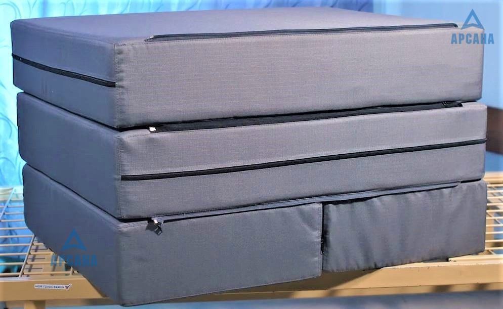 Совместно с лучшими травматологами-ортопедами Центра Илизарова мы разработали складной матрас. Он универсальный по размерам. Пациент сам регулирует длину ниши. Очень выгодно для тех, кто на удлинении конечности или кому предстоит несколько операций.