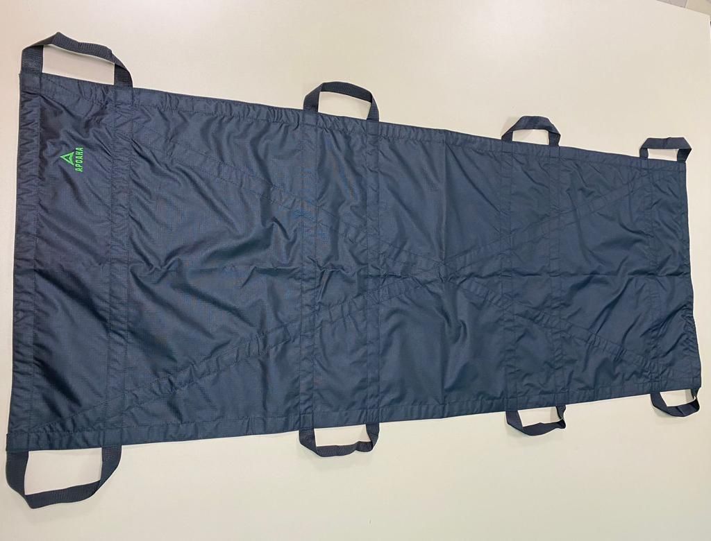 Носилки мягкие бескаркасные выполнены из легкой прочной водоотталкивающей ткани, устойчивой к разрывам и имеют четыре пары усиленных ручек с каждой стороны.