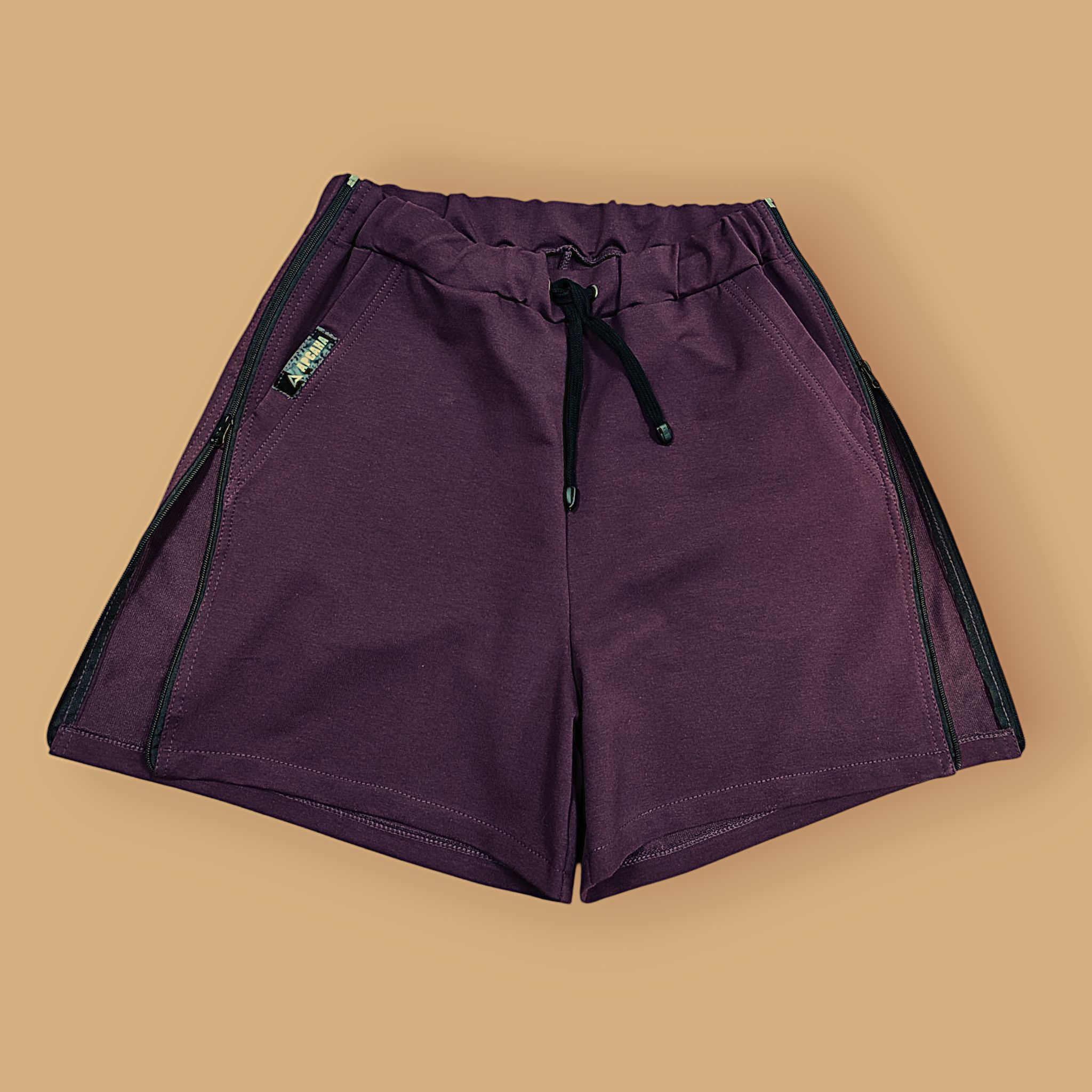 Ортопедические шорты с молниями по бокам посадки прямого кроя средней длины, с карманами по бокам, пояс на эластичной резинке регулируется шнурком.