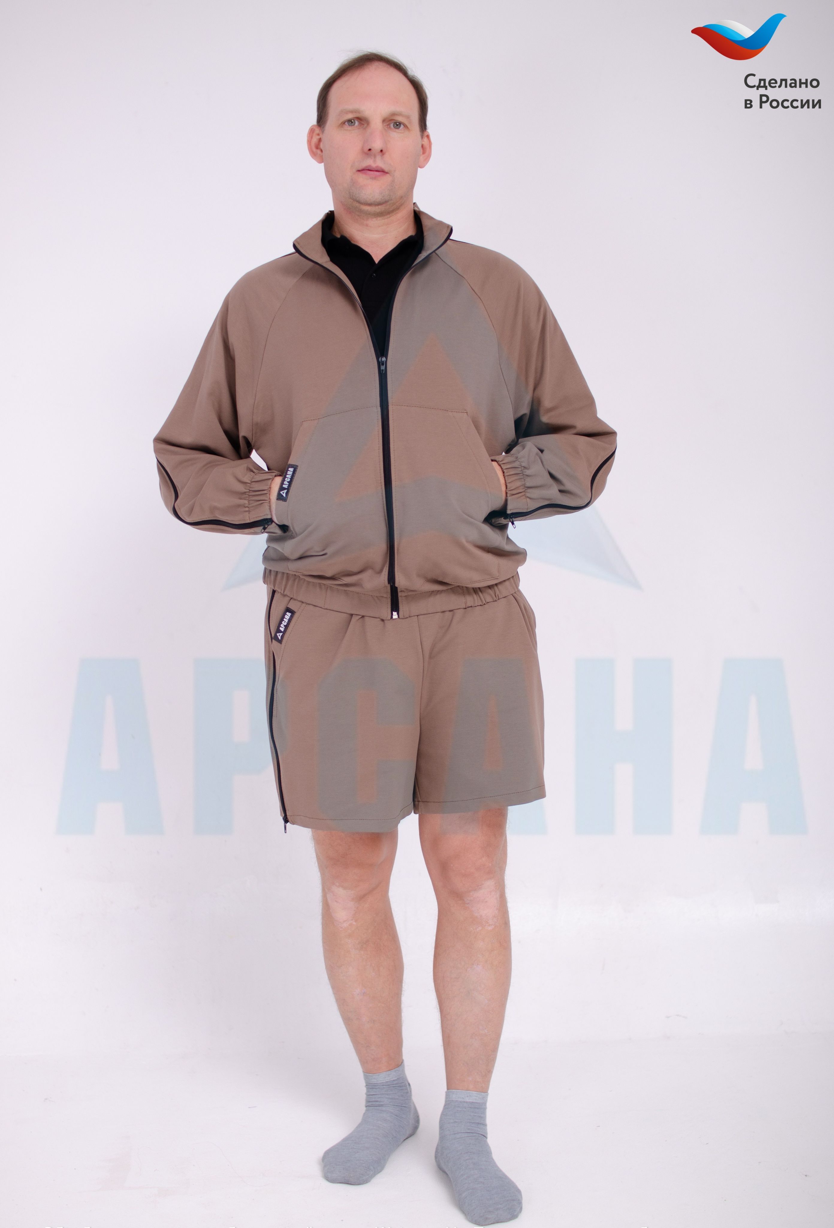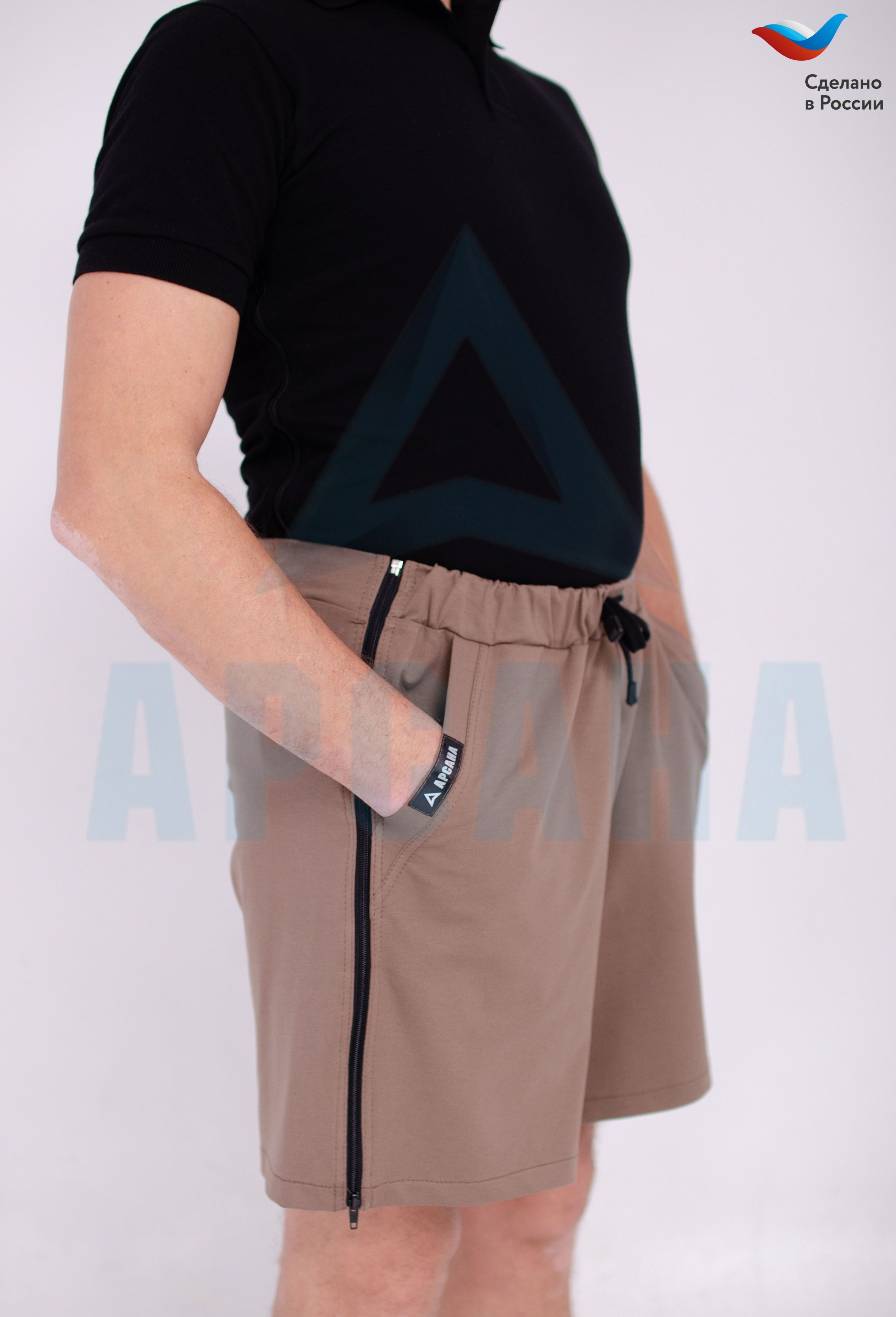 Ортопедические шорты с молниями по бокам посадки прямого кроя средней длины, с карманами по бокам, пояс на эластичной резинке регулируется шнурком.