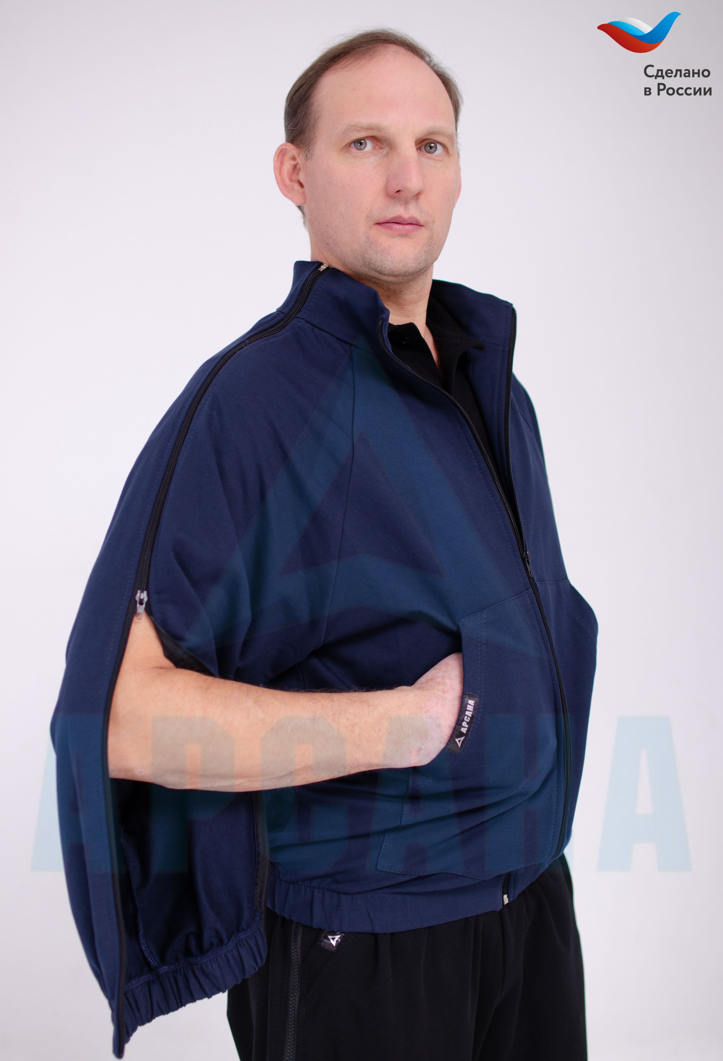 Толстовка ортопедическая с молниями по верху - полностью расстегивающийся рукав с молнией по всей длине – от плечевого шва до манжеты. Позволяет легко надевать поверх гипса, ортезов, аппарата Илизарова без причинения дискомфорта.